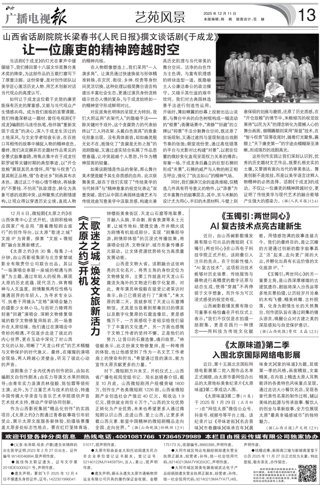 这些创做实践让我们深刻认识到,优良的汗青题材文艺做品,既要扎根史实的土壤,又要具有面向现代的审美表达。舞美立异不是炫技,而是以美学言语注释人物的必然选择。话剧《于成龙》的成功,不只让一位廉吏的逾越时空,更证了然保守美学取现代艺术的融合可以或许发生强大的传染力。(据《》12。4)。